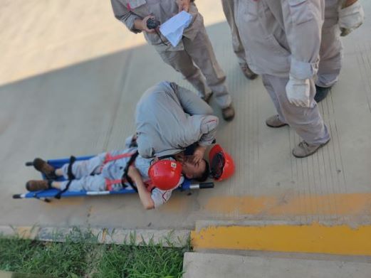 隨著總指揮一聲令下,下午15:00演練準時開始,檢維人員在對4#Z0401綜合管網(wǎng)井巡檢時,因在沒有事先檢測井內(nèi)氧含量的情況下,私自進入綜合管網(wǎng)井進行違章作業(yè),導致窒息昏厥,同班人員發(fā)現(xiàn)后立即報告車間并撥打120救援電話,車間接到報告后立即啟動有限空間作業(yè)專項預案開展救援并上報領(lǐng)導。各應(yīng)急小組相繼到達現(xiàn)場,分工展開救援工作。