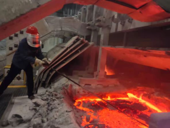 時值酷暑,烈日當空,火辣辣的陽光曝曬著大地。在鋁鎂合金分公司電解廠房里,電解爐散發(fā)出來的陣陣余熱,讓整個廠房像是一座蒸爐,但這樣的高溫條件并不能阻擋電解一線員工的工作熱情。他們內穿秋衣秋褲,外穿厚實的牛仔工作服,腳踩隔熱鞋,頭戴裝有防護鏡的頭盔,手上套著沉甸甸的隔熱手悶子,在高達60℃的工作環(huán)境中揮汗如雨,用實際行動詮釋著敬業(yè)和奉獻的含義,譜寫出一曲曲戰(zhàn)高溫、斗酷暑的勞動贊歌。 就是在這樣的環(huán)境下,隨處可以看到換極的、出鋁的、撈渣的、打火眼的、收邊整形的等高溫作業(yè)。 快看,換極人將槽罩打開的瞬間,高達七八百度的熱輻射撲面而來,他們穿戴上阻燃隔熱的圍裙、套袖、防護面罩、防護鏡,使原本就高溫的工作環(huán)境更加悶熱異常,他們先將“換極安全護欄”安放到位,然后扛起大鉤沖進槽間開始鉤撈殼面塊。撈完殼面塊放下大鉤換成大耙再次進入工作面的電解工開始處理爐底,鉤、帶、扒一系列動作猶如行云流水一樣。這一工作最為費時,必須將爐底處理干凈,才能避免換極后可能出現(xiàn)的電壓波動。最后就是測量兩水平,清掃平衡母線浮灰,指揮安放新極,人工初封極,天車覆蓋保溫料。為了避免電解槽出現(xiàn)不必要的換極波動,所有的工作必須在20分鐘之內完成。汗水模糊了雙眼、秋衣秋褲、工作服早已被汗水浸透,但是電解人沒有一句怨言,依然堅守在電解槽旁,有條不紊的進行著標準操作。大杯大杯的綠豆湯,咕嘟咕嘟的灌下,一次兩瓶的藿香正氣水一口就被喝干...... 戰(zhàn)高溫,熱情不減;斗酷暑,決心依然。他們選擇堅守、選擇奉獻,是因為他們赤誠不變的“電解情”,是因為他們身上的責任和擔當......致敬在高溫下奮斗的電解人! |