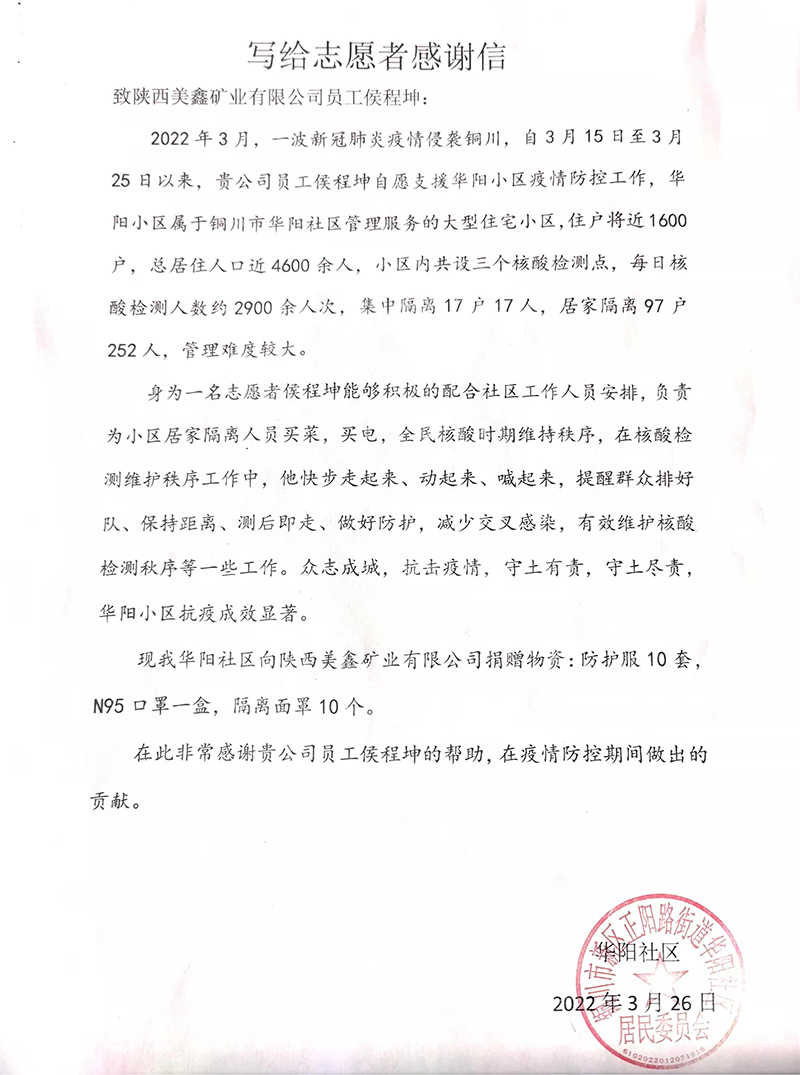 3月14日,“新冠病毒”疫情的突襲,使整個(gè)銅川按下了暫停鍵。防控形勢(shì)驟然緊張,防控工作壓力驟增。關(guān)鍵時(shí)刻,公司黨委發(fā)出倡議,號(hào)召?gòu)V大黨員干部積極發(fā)揮先鋒模范作用,主動(dòng)投身疫情防控工作,礦業(yè)公司的侯程坤積極響應(yīng)號(hào)召,成為眾多“逆行者”中的一員。 “疾風(fēng)知?jiǎng)挪荩ky顯擔(dān)當(dāng)”,我為防“疫”出把力。 侯程坤,男,1994年5月1日出生,目前在礦業(yè)公司供銷(xiāo)部從事磅房管理工作。據(jù)了解,疫情發(fā)生時(shí)侯程坤正在家中輪休,當(dāng)他得知公司黨委的號(hào)召后,經(jīng)與父母短暫溝通后,便立即向當(dāng)?shù)厣鐓^(qū)提出申請(qǐng),義無(wú)反顧的加入到“疫情防控”志愿者隊(duì)伍當(dāng)中。在問(wèn)道他為什么要參加此次志愿者防疫工作時(shí),他淡淡的說(shuō)到:“在國(guó)家危難之際,作為一名國(guó)有企業(yè)職工,代表我們企業(yè)為防疫工作出一點(diǎn)力,我感到非常榮幸...” “疫情就是命令,防控就是責(zé)任”,做好每家住戶的防疫工作是我的責(zé)任。 在此次疫情防控工作中,按照當(dāng)?shù)厣鐓^(qū)對(duì)志愿者的工作分配,侯程坤同志被分配到銅川市新區(qū)疫情較為嚴(yán)重的華陽(yáng)小區(qū)工作。作為我市建設(shè)較早的一批小區(qū),華陽(yáng)小區(qū)有著顯著的特點(diǎn),小區(qū)大,住戶雜,90%的樓宇目前還沒(méi)有安裝電梯,導(dǎo)致防疫工作在物資運(yùn)送、通知核檢、維護(hù)秩序等工作上增加了不少困難。面對(duì)華陽(yáng)小區(qū)的實(shí)際情況和困難,志愿者們勇敢的扛起了責(zé)任,每天天不亮,侯程坤就戴上N95,穿上防護(hù)服趕到社區(qū),根據(jù)工作安排,和大家一起忙碌著。與侯程坤一起工作的志愿者是這樣描述他的,“此次抗擊疫情,小候同志表現(xiàn)得非常出色。在通知住戶核酸檢測(cè)上,侯程坤每天天微微亮就開(kāi)始按樓號(hào)通知大家下樓做核酸檢測(cè),維護(hù)秩序。為防止有住戶漏掉,他就一家一戶的敲門(mén)通知,做到了人人核酸檢測(cè)。住戶做完核酸檢測(cè)后,他又開(kāi)始對(duì)小區(qū)住戶需要的生活用品、糧油蔬菜等進(jìn)行分揀,然后馬不停蹄的將物品挨家挨戶送上門(mén)。在配送過(guò)程中當(dāng)遇到住戶有需求和困難時(shí),他也能及時(shí)反饋并積極解決,真是個(gè)非常不錯(cuò)的小伙子!” “隨時(shí)待命,勇當(dāng)先鋒”,時(shí)刻牢記責(zé)任與擔(dān)當(dāng)。 隨著疫情形勢(shì)的逐漸好轉(zhuǎn),銅川市也積極有序推進(jìn)復(fù)工復(fù)產(chǎn)。在此次疫情防控工作中我們要向參與防疫的醫(yī)務(wù)人員、志愿者表示由衷的感謝,是他們用實(shí)際行動(dòng)為大家筑起了一道道健康的“防火墻”,守護(hù)著我們的安全。當(dāng)問(wèn)道侯程坤在此次“抗擊疫情”中有什么感悟時(shí),他答到:“雖然志愿服務(wù)結(jié)束了,但這次的經(jīng)歷對(duì)我來(lái)講卻是一次非常難得的錘煉,雖然付出了很多的汗水,但是當(dāng)我看到華陽(yáng)小區(qū)生活秩序得到穩(wěn)定恢復(fù),自己也受到了華陽(yáng)社區(qū)的表?yè)P(yáng)和認(rèn)可時(shí),我覺(jué)得一切付出都是值得的。如若有一天,國(guó)家、社會(huì)和我們企業(yè)再一次需要我,我仍將義無(wú)反顧的投身第一線,用實(shí)際行動(dòng)來(lái)證明國(guó)有企業(yè)職工的責(zé)任和擔(dān)當(dāng)! |