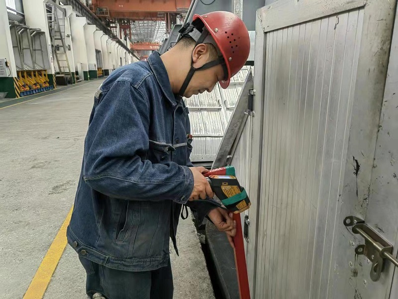 近日,鋁鎂合金分公司電解一車間通過改造手持式測(cè)溫槍基礎(chǔ)結(jié)構(gòu)及加裝顯示設(shè)備等技術(shù)手段,成功制作一款“智能便攜式測(cè)溫儀”,科學(xué)有效地解決了電解槽端頭溫度無法監(jiān)測(cè)的技術(shù)“盲區(qū)”,為精準(zhǔn)監(jiān)控和合理調(diào)整電解槽技術(shù)參數(shù)提供了技術(shù)支撐。 由于電解槽兩端頭散熱孔距水泥路面僅有10余公分,操作人員無法利用普通手持式測(cè)溫槍完成槽端頭散熱孔的溫度測(cè)量工作,對(duì)電解槽安全平穩(wěn)生產(chǎn)構(gòu)成一定威脅。電解一車間本著“發(fā)現(xiàn)問題,解決問題”的積極態(tài)度,經(jīng)過技術(shù)革新小組一系列論證、實(shí)踐、改造等工作,“智能便攜式測(cè)溫儀”至此誕生,它由測(cè)溫槍、加長桿、攝像頭、顯示屏等部件構(gòu)成,使用時(shí)只需將測(cè)溫儀前端部分放置于槽端頭散熱孔內(nèi),溫度數(shù)值便可通過攝像頭顯示在后端屏幕上,操作人員無需彎腰即可輕松準(zhǔn)確記錄每個(gè)測(cè)量點(diǎn)溫度。此外“智能便攜式測(cè)溫儀”還遵循輕量化設(shè)計(jì)及人體工程學(xué)原理,使用靈活簡便,節(jié)省體力,深受廣大職工好評(píng)。 |