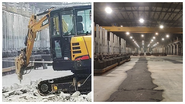 陽極分公司組裝車間裝卸站附近地面由于15T叉車、拖車頻繁行駛碾壓,造成大小坑洼十余處,盡管車間鋪設(shè)了厚鋼板對(duì)地面進(jìn)行臨時(shí)應(yīng)急處理,但始終治標(biāo)不治本,存在一定車輛行駛安全隱患。 為了徹底改善地面環(huán)境,消除此項(xiàng)隱患,車間決定集中對(duì)裝卸站周邊等廠房殘缺下陷地面進(jìn)行修復(fù)。為了盡量減少對(duì)正常作業(yè)的影響,車間對(duì)生產(chǎn)現(xiàn)場(chǎng)進(jìn)行細(xì)致考量核實(shí),最終決定在最大程度利用現(xiàn)有區(qū)域空間的同時(shí),將裝卸站上站工位采取15T叉車人工上線,由人工清理上線后托盤中剩余大塊電解質(zhì),隨后將清理后的陽極托盤用于裝成品陽極,并采取3T叉車下線,5T叉車和天車裝盤,最后將裝好的成品陽極送往鋁鎂合金分公司電解車間使用。在地面修復(fù)過程中,現(xiàn)場(chǎng)作業(yè)環(huán)境復(fù)雜,存在叉車、拖車、天車等交叉作業(yè)情況,車間由專人負(fù)責(zé)現(xiàn)場(chǎng)安全監(jiān)管,拉起警戒線,劃定風(fēng)險(xiǎn)、安全區(qū)域,確,F(xiàn)場(chǎng)運(yùn)行安全可控,在車間和施工人員的協(xié)調(diào)配合下,僅用11天就完成了地面修復(fù)工作,經(jīng)養(yǎng)護(hù)后隨即投入使用,車間生產(chǎn)線恢復(fù)正常運(yùn)行。 車間廠房地面修復(fù)工作的順利完成,在美化和改善了車間整體環(huán)境的同時(shí),穩(wěn)定和保證了車間正常生產(chǎn)秩序,為鋁鎂合金分公司充足供應(yīng)成品陽極和電解質(zhì)破碎料打下了堅(jiān)實(shí)基礎(chǔ)。 |
