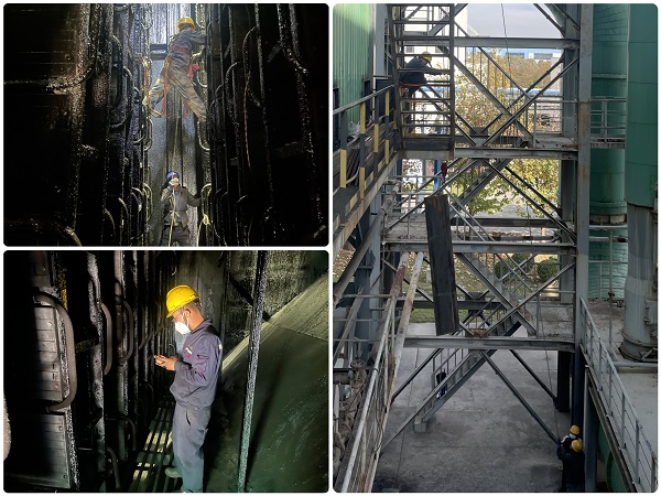 隨著生產(chǎn)工作持續(xù)進行,10月中下旬,陽極分公司焙燒車間2#煙氣凈化系統(tǒng)電捕焦油器陽極板已達到使用更換周期,為防止發(fā)生極板脫落、電暈閉塞等設(shè)備隱患,經(jīng)分公司同意,車間決定對2#系統(tǒng)電捕焦油器陽極板進行集中更換。 由于本次極板更換時間緊、任務(wù)重,分公司決定由焙燒車間和外包單位共同完成此項工作。車間結(jié)合生產(chǎn)實際,制定詳實的工作方案和應(yīng)急預(yù)案,協(xié)助辦理受限空間工作票,定時定點做好通風(fēng)檢測等安全保障措施,安排專人認真進行現(xiàn)場監(jiān)護管理和檢查清理,確保極板更換作業(yè)安全高效完成。在此次更換作業(yè)中,焙燒車間總結(jié)以往工作經(jīng)驗,與外包單位協(xié)同配合,采用定、動滑輪組調(diào)運安裝陽極板,大幅提高了安全性能,減輕勞動強度,有效提升了工作效率。經(jīng)過二十余天緊張忙碌工作,近期,2#系統(tǒng)電捕焦油器陽極板全部更換完成,經(jīng)調(diào)試運行一切狀況良好。 此次極板更換工作,徹底消除了因極板腐蝕損壞、捕集吸附能力減弱所引起的系統(tǒng)電流降低、電暈閉塞、極板脫落等潛在安全隱患,保證了車間環(huán)保排放指標正常平穩(wěn),也為車間后期自主更換陽極板作業(yè)積累了寶貴經(jīng)驗。 |