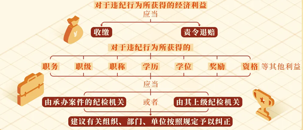 《中國共產(chǎn)黨紀(jì)律處分條例》對于違紀(jì)行為所獲利益如何處理作出了規(guī)定。主要分為兩種情況—— 對于違紀(jì)行為所獲得的經(jīng)濟(jì)利益,應(yīng)當(dāng)收繳或者責(zé)令退賠。對于主動上交的違紀(jì)所得和經(jīng)濟(jì)損失賠償,應(yīng)當(dāng)予以接收,并按照規(guī)定收繳或者返還有關(guān)單位、個人。 依照《中國共產(chǎn)黨紀(jì)律處分條例》《中華人民共和國公職人員政務(wù)處分法》及相關(guān)指導(dǎo)性案例,在追究黨紀(jì)責(zé)任時,處置涉案財(cái)物的主要方式為“收繳”和“責(zé)令退賠”;在追究監(jiān)察責(zé)任時,處置涉案財(cái)物的主要方式為“沒收”“追繳”和“責(zé)令退賠”。其中,追究黨紀(jì)責(zé)任時對違紀(jì)所得予以“收繳”,相當(dāng)于追究監(jiān)察責(zé)任時對違法所得予以“沒收”和“追繳”。 “收繳”通常針對的是實(shí)施違紀(jì)違法行為所獲得的財(cái)物及其孳息收益,“責(zé)令退賠”通常針對的是違反規(guī)定揮霍浪費(fèi)國有資產(chǎn),如公款吃喝、公款旅游以及違反規(guī)定亂罰款、亂收費(fèi)獲得的財(cái)物等,責(zé)令被審查調(diào)查人將違紀(jì)違法所得的財(cái)物予以歸還,財(cái)物已經(jīng)被消耗、毀損的,應(yīng)當(dāng)用與之價值相當(dāng)?shù)呢?cái)物予以賠償,責(zé)令退賠的財(cái)物直接退賠原所有人或原持有人,無法退賠的上繳國庫。 對于違紀(jì)行為所獲得的職務(wù)、職級、職稱、學(xué)歷、學(xué)位、獎勵、資格等其他利益,應(yīng)當(dāng)由承辦案件的紀(jì)檢機(jī)關(guān)或者由其上級紀(jì)檢機(jī)關(guān)建議有關(guān)組織、部門、單位按照規(guī)定予以糾正。 這里的“有關(guān)組織、部門、單位”,主要是指對違紀(jì)行為所獲得的職務(wù)、職級、職稱、學(xué)歷、學(xué)位、獎勵、資格等其他利益有權(quán)予以糾正的組織、部門、單位。 同時,結(jié)合《條例》第三十七條、第三十八條規(guī)定,對違紀(jì)后下落不明的黨員,黨組織作出處分決定前死亡的黨員,或者死亡之后發(fā)現(xiàn)曾有嚴(yán)重違紀(jì)行為的黨員,經(jīng)調(diào)查確屬其實(shí)施違紀(jì)行為獲得的利益,也應(yīng)當(dāng)依照上述規(guī)定處理。 |