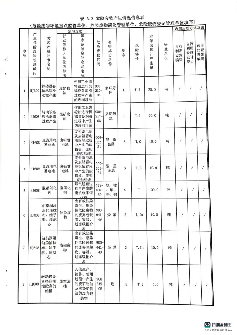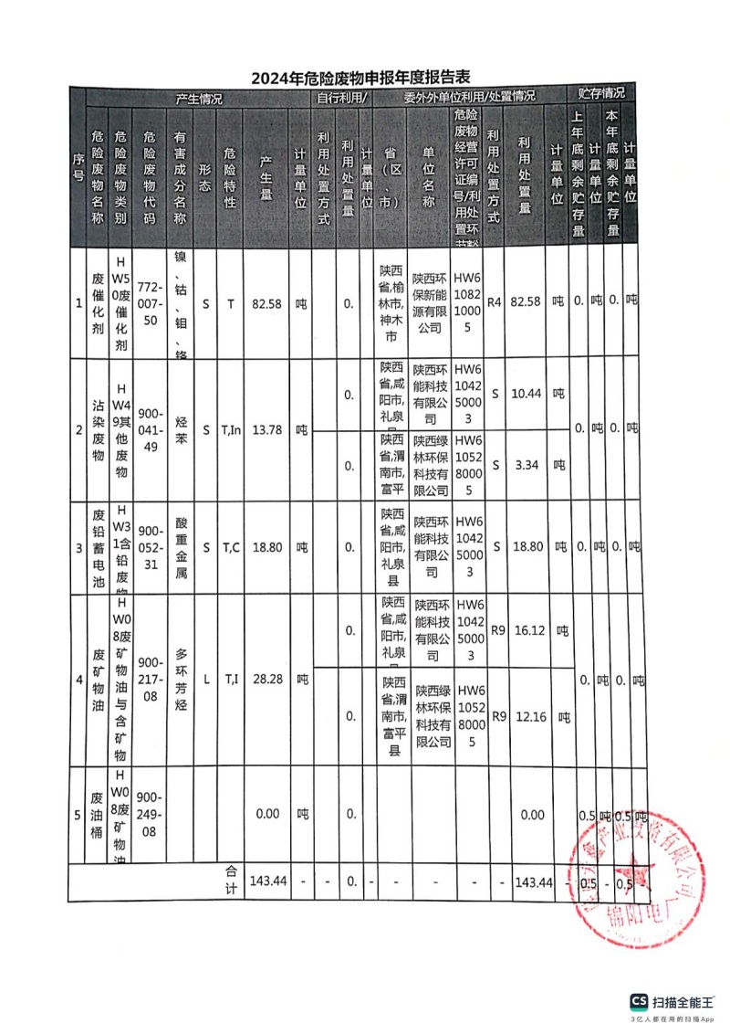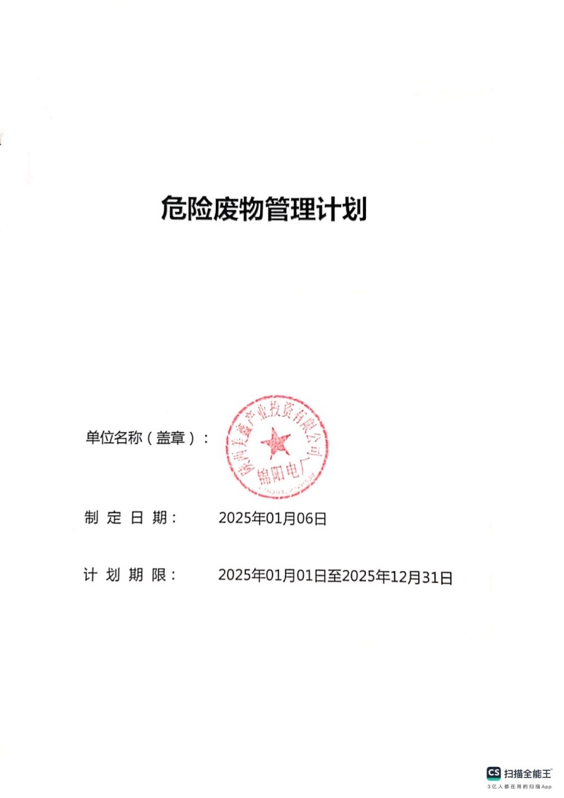 2025年危險廢物管理計劃(錦陽電廠)